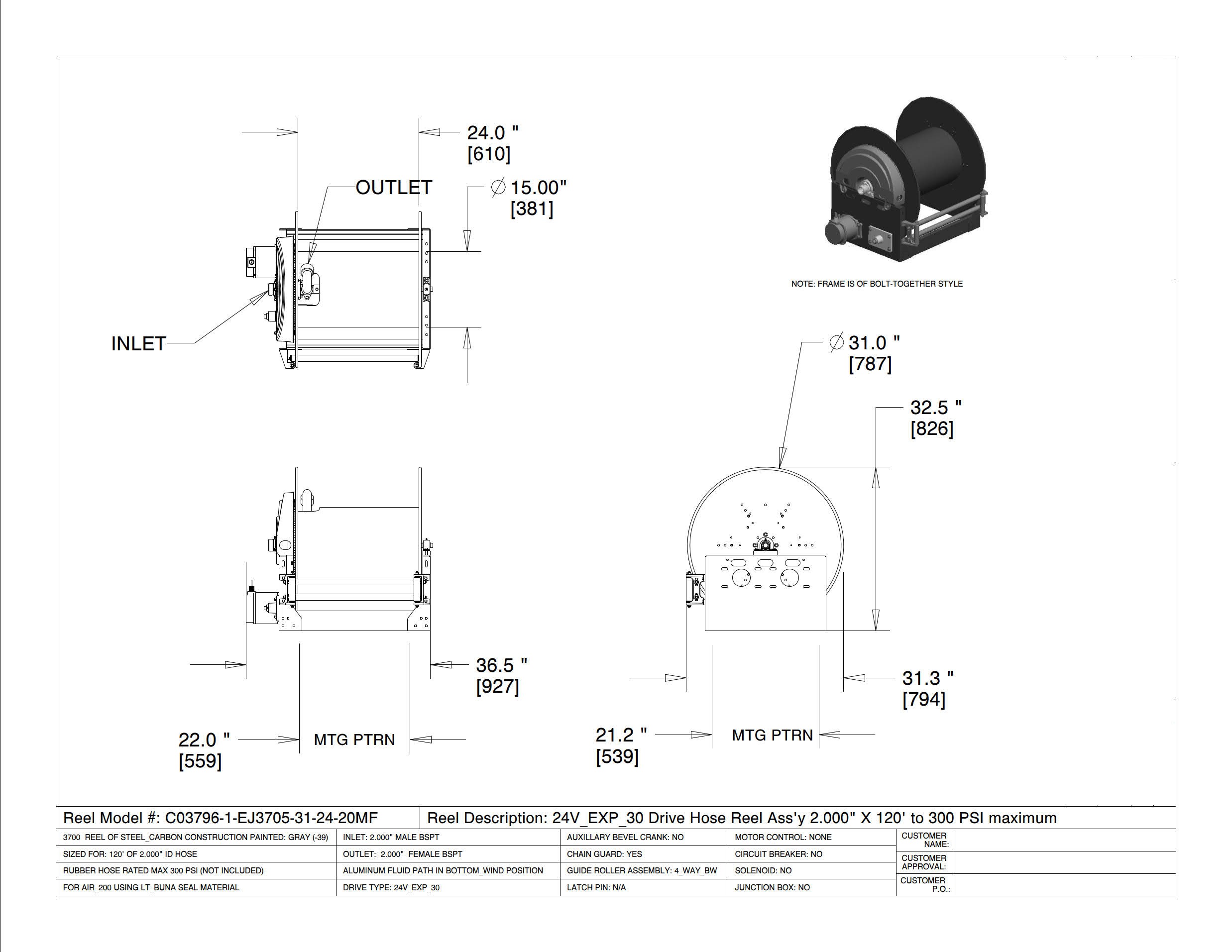 Slangupprullare – 36m Ø2″ slang- Motordriven 24V DC